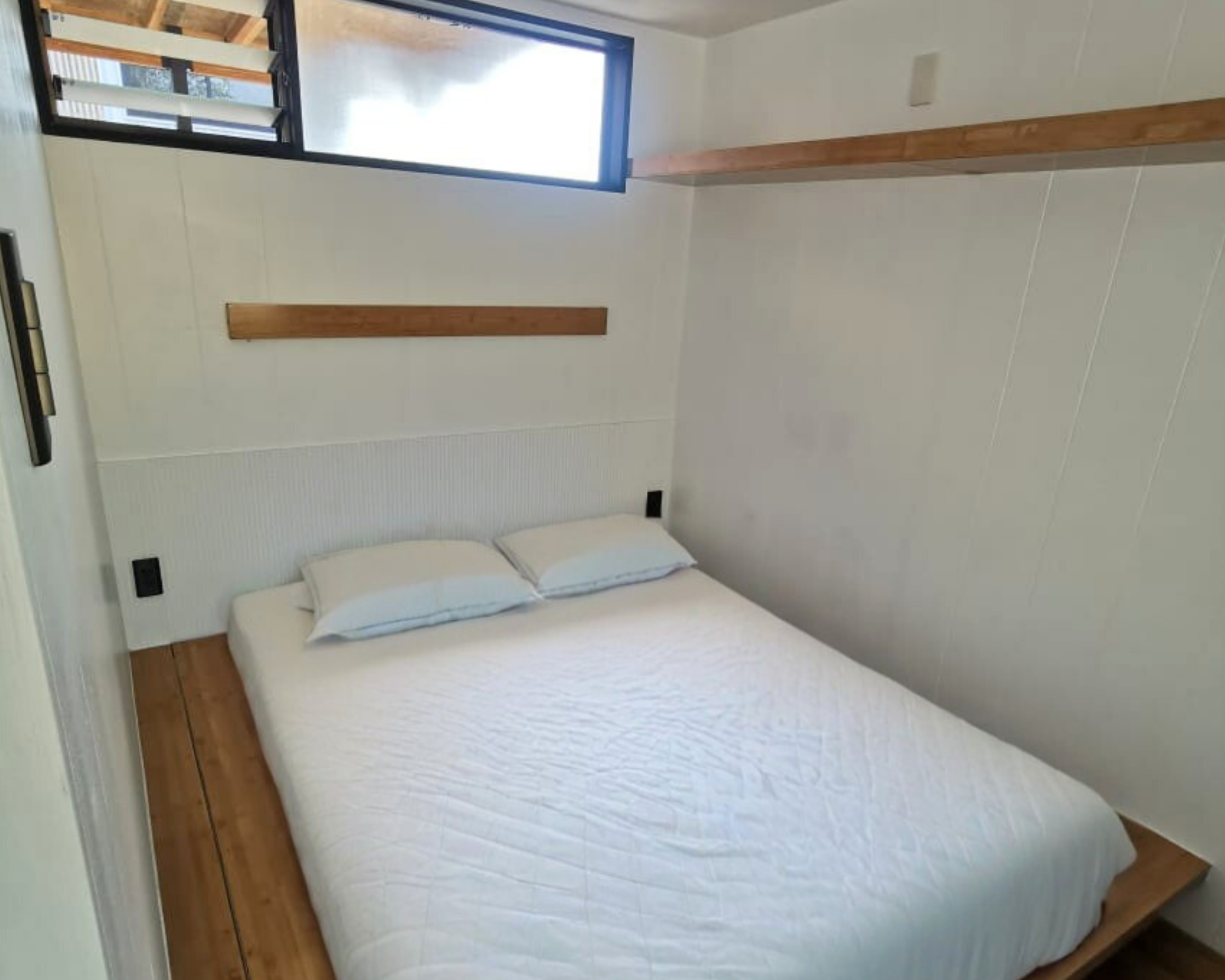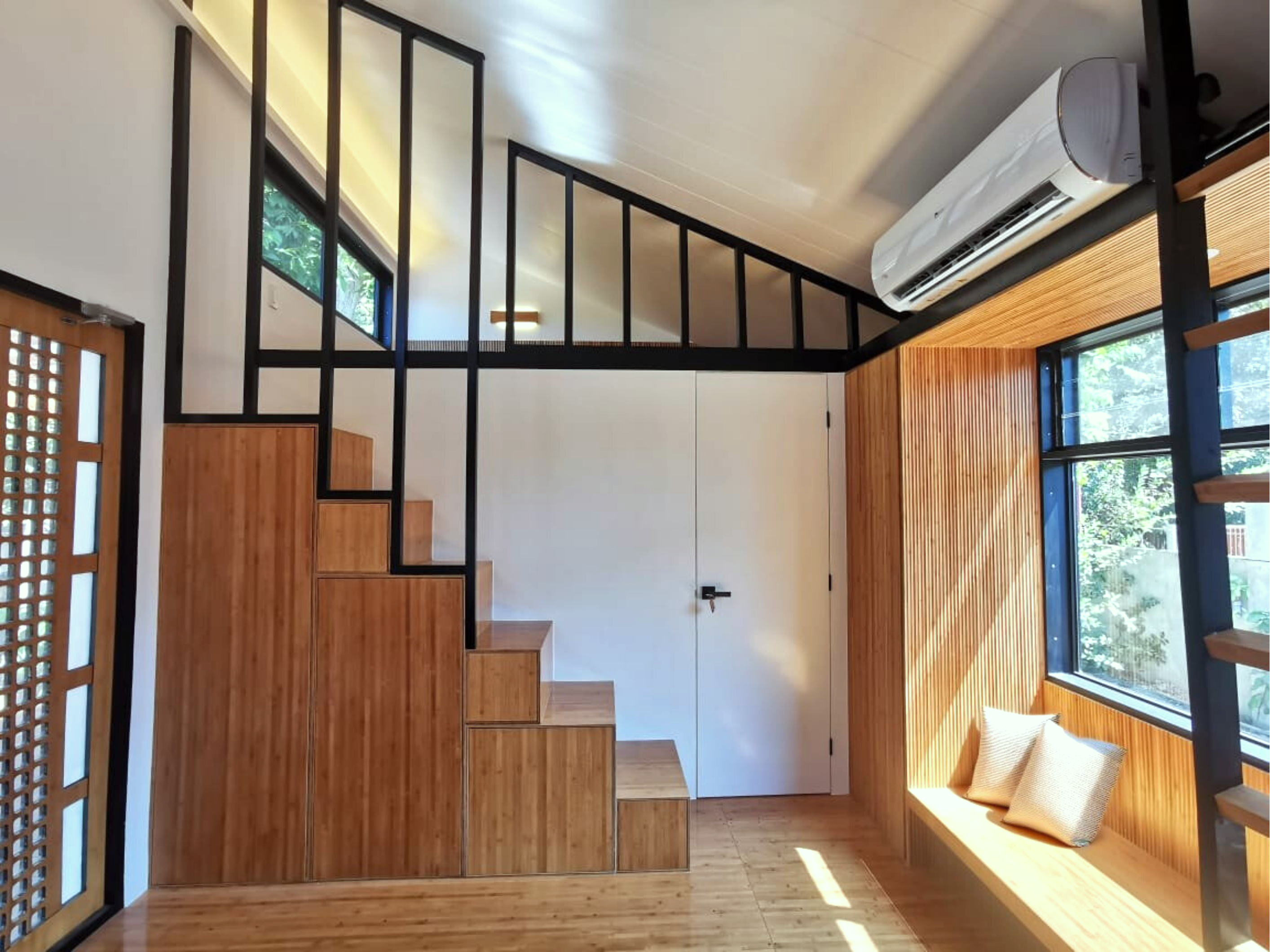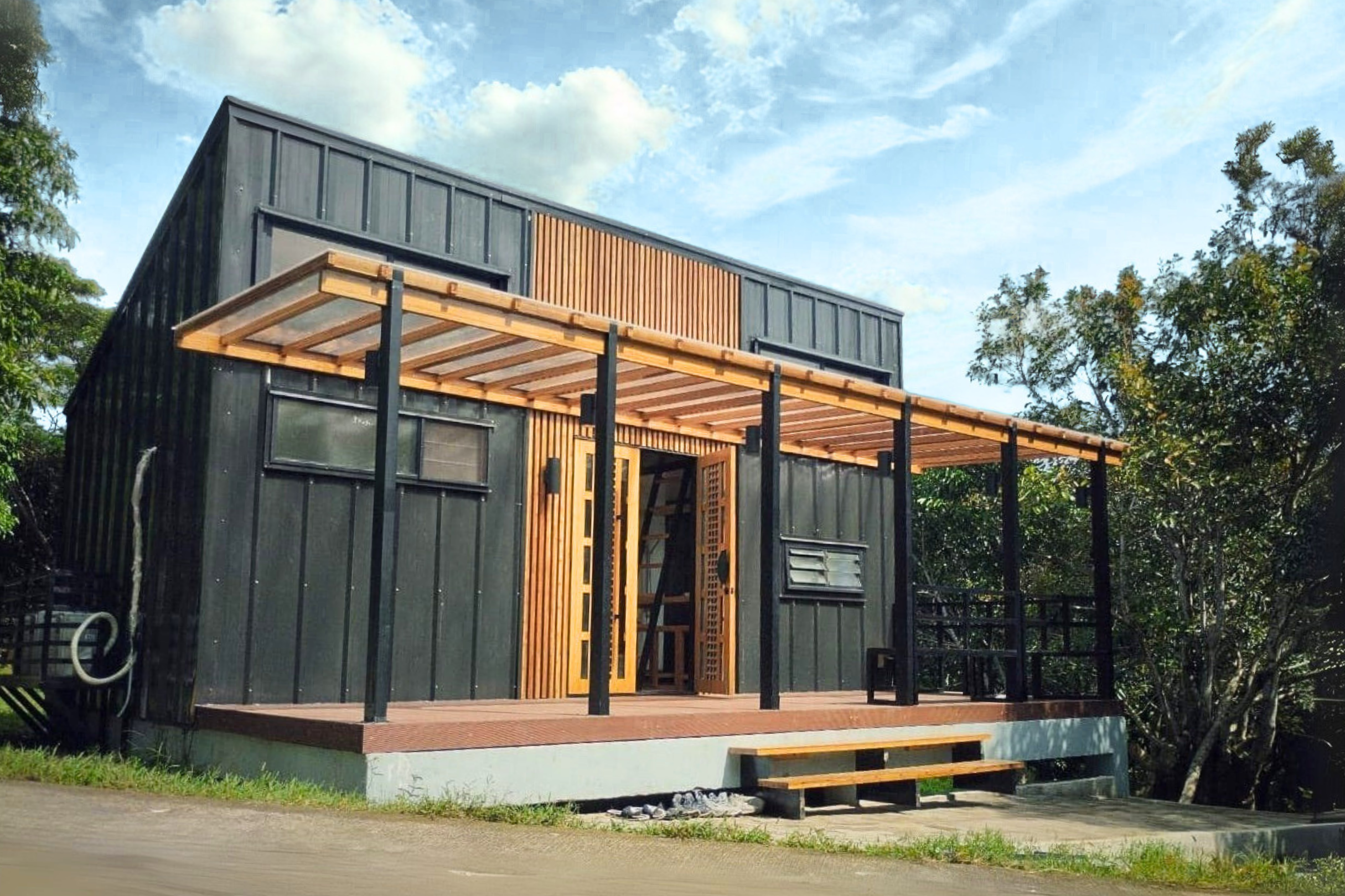 A compact and fully customizable one-bedroom, two-loft home designed for a family of four